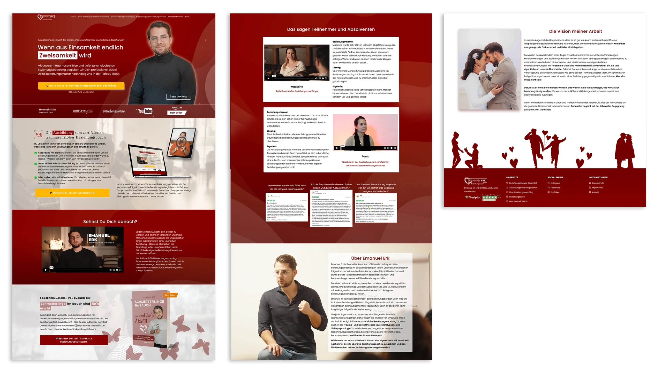 Die Website wirkt jetzt aufgeräumt, modern und hochwertig, gleichzeitig trägt sie eine leichte feminine Handschrift, die Emanuel sich gewünscht hat. Der Gesamteindruck ist ein stimmiger Mix aus Emotion und Professionalität.