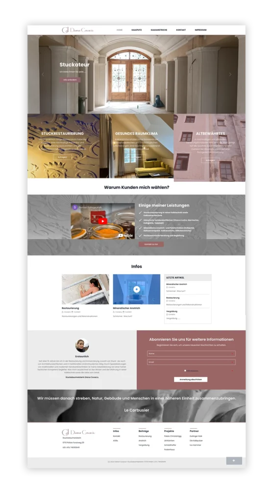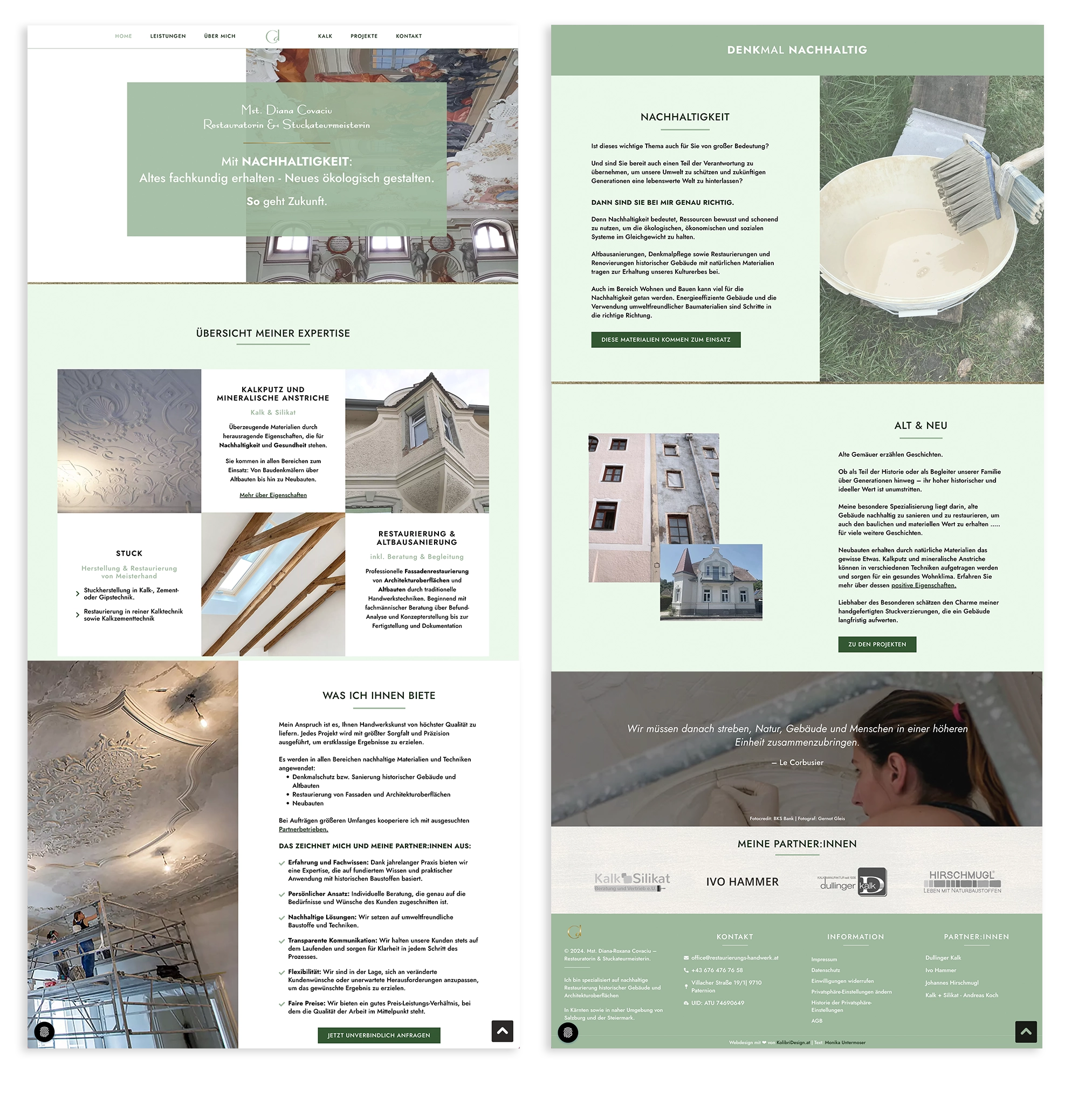 Im Frühjahr 2024 kam Diana Covaciu, Restauratorin und Stuckateurmeisterin aus Kärnten, auf mich zu. Ihr Ziel: Aus ihrem bisherigen Onepager sollte eine moderne, strukturierte Website entstehen, die nicht nur schön aussieht, sondern auch über Google gefunden wird.