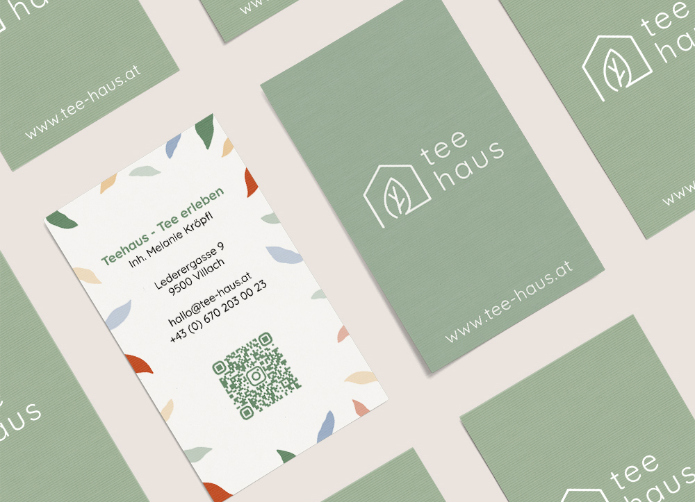 So schaut es zum Beispiel aus, wenn ich die Teehaus-Farbpalette auf dem Visitenkarten-Design anwende.