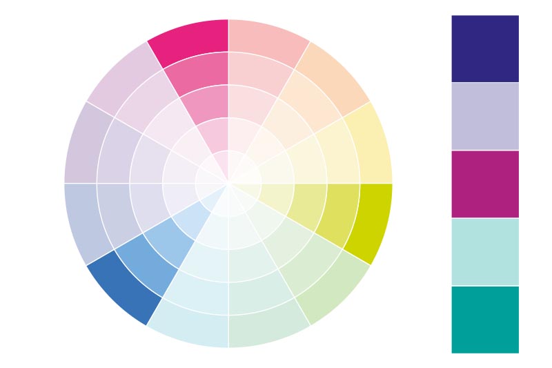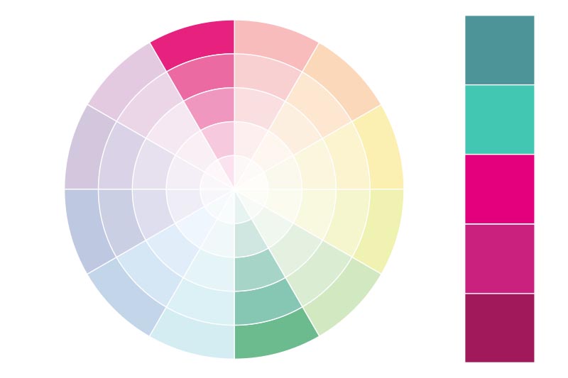 Im analogen Farbschema werden Farben aus benachbarten Bereichen des Farbkreises ausgewählt. Dieses Schema verwendet Farben, die harmonisch miteinander wirken, da sie ähnliche Tonwerte haben bzw. aus der gleichen Farbfamilie kommen.